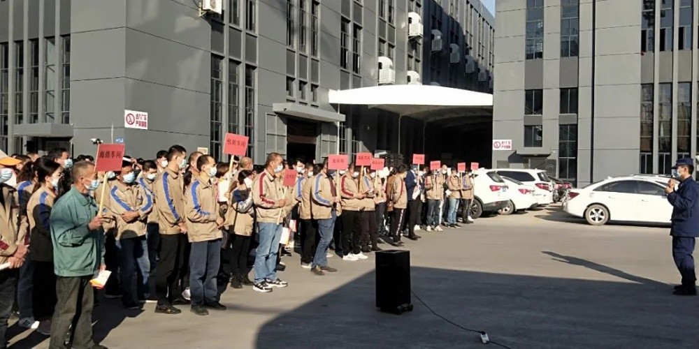 隨著警報(bào)響起,應(yīng)急疏散演練正式開始,班組長(zhǎng)在各車間門口引導(dǎo)員工迅速離開車間,員工用濕毛巾之類物品捂住口鼻彎腰低姿快速有序地沿防火安全疏散通道向外跑,各部門負(fù)責(zé)人將員工引導(dǎo)至空曠安全地帶“緊急集合點(diǎn)”,隨即各車間主任清點(diǎn)人數(shù),并層層向上匯報(bào)。