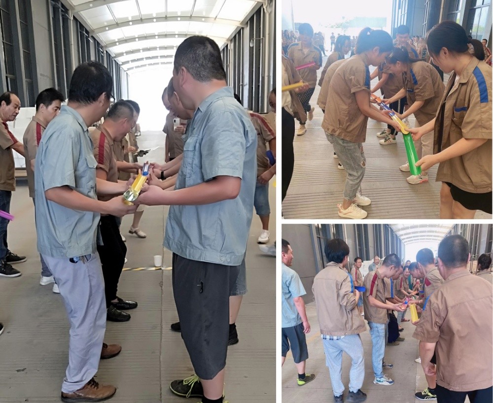 這是一場爭分奪秒、講究合作的極限突破活動,要求所有人必須以最快的速度搭建一個高效的梯隊,去完成一項“偉大”的任務,考驗的不僅是耐力,還有團隊成員之間的互助、支持與合作。隨著“比賽開始”的口令,大家熱情高漲,隊員們齊心協力,默契配合,小球在圓管中飛快地轉動著身子,員工們縱情地投入著、激情地呼喊著。通過激烈角逐,成品車間代表隊以較好的協作能力和靈活的團隊戰術獲得第一名。