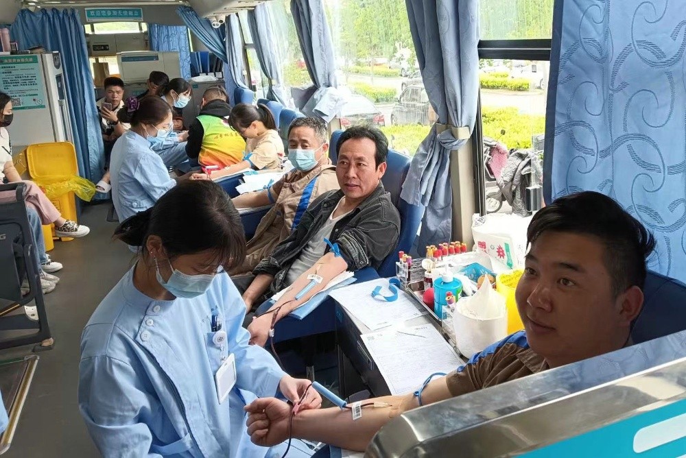 5月12日,在斜橋鎮(zhèn)政府會(huì)議中心的獻(xiàn)血現(xiàn)場(chǎng),有一群特別亮眼的人,他們大部分穿著恒森卡其色的工作服,有序地流動(dòng)在獻(xiàn)血的各個(gè)點(diǎn)上,填表登記、測(cè)量血壓、抽血化驗(yàn),而后勇敢地?cái)]起袖子獻(xiàn)出殷紅的熱血。