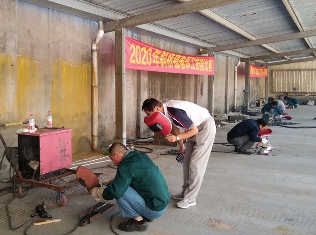 火熱天氣,火熱激情,火光四濺,8月20日下午,“學(xué)技術(shù) 練技能 當(dāng)能手 作貢獻(xiàn)”2020年斜橋鎮(zhèn)電焊工技能比賽,在我集團(tuán)沙發(fā)革事業(yè)部宿舍樓前場地上如火如荼地進(jìn)行。